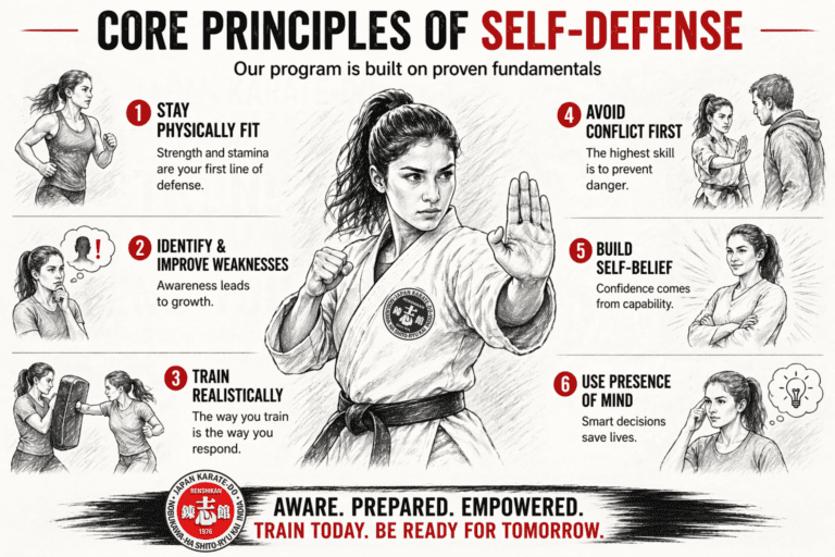 Many short-term courses teach a few techniques or “quick tricks.” While these may create temporary confidence, they are not enough in real-life situations. True self-defense is not about memorizing moves—it is about developing strength, awareness, timing, and presence of mind through proper training.