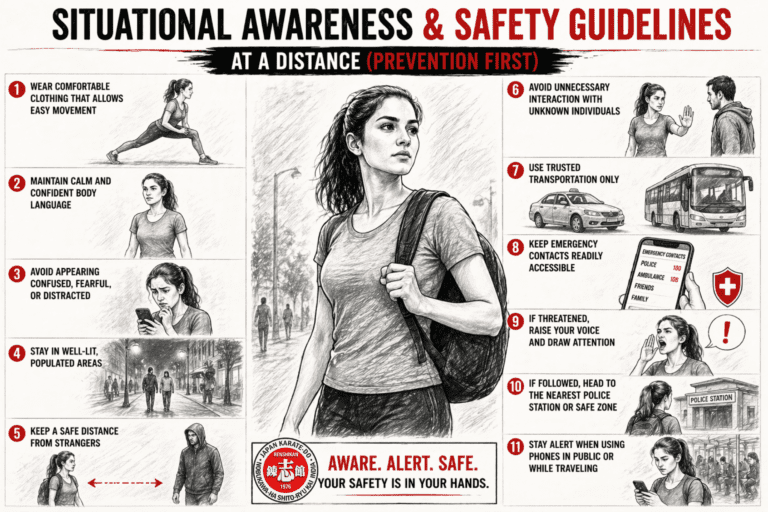- Avoid Conflict First – The highest skill is to prevent danger