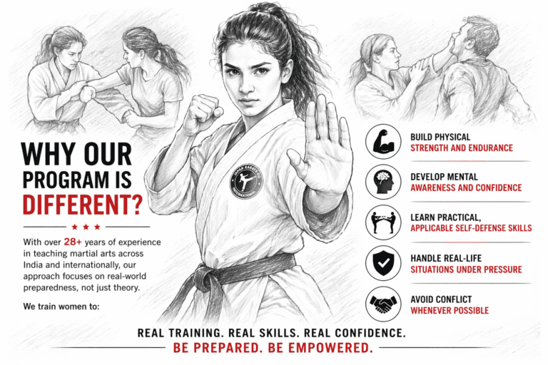 With over 28+ years of experience in teaching martial arts across India and internationally, our approach focuses on real-world preparedness, not just theory.